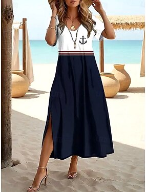 Mulheres Vestido Longo Vestido de turno Vestidos Para o Verão Vestido T shirt Vestido de verão Boêmia Praia Festa Feriado Forma Assenta Gráfico Geométrica Vintage Manga Curta Gola Redonda Azul Marinha