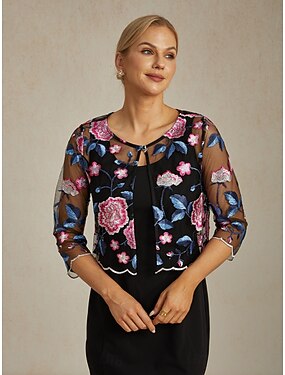Mulheres Blazer Leve Renda Bordado Elegante Floral Formal Curto Crewneck Normal Manga 3/4 agasalhos Fúcsia Verão Primavera