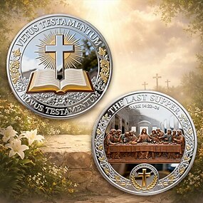 Moeda comemorativa da fé cristã em homenagem à Última Ceia e às Sagradas Escrituras, medalha colecionável religiosa inspiradora, presente devocional para fiéis e membros da igreja.