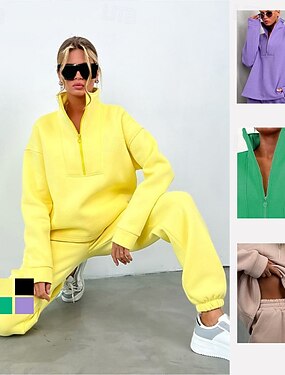 Mulheres Conjuntos de agasalhos com pulôver Moletons casuais Conjuntos de sala de estar de 2 peças Perna larga Cor Sólida Conjuntos Primavera Preto Verde Tropa Exterior Viagem Cooper Manga Longa