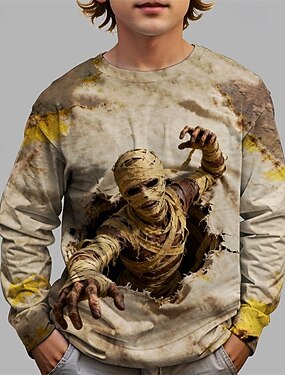 dia das Bruxas Para Meninos 3D Caveiras Camisa Camiseta Manga Longa Primavera Outono Moda Básico Infantil 4-12 anos Gola Redonda Ao ar livre Casual Diário Normal