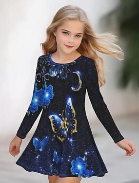 Meninas 3D Gráfico Borboleta Vestido Manga Longa Verão Primavera Férias Diário Feriado Princesa Lindo Doce Infantil 4-12 anos Vestido casual Vestido A Line Altura dos Joelhos Normal