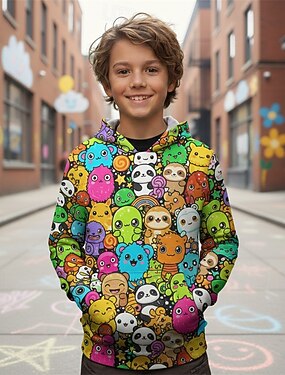 Moletom com capuz estampa 3D para meninos, estampa engraçada com sorriso, manga longa, moda outono inverno, streetwear, crianças de 4 a 12 anos, com capuz, casual, para atividades ao ar livre, ajuste