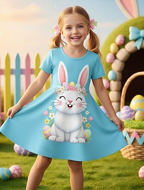 Páscoa Meninas 3D Gráfico Coelho Vestido Manga Curta Impressão 3D Verão Primavera Diário Férias Festa Estilo bonito Básico Casual Infantil 4-12 anos Vestido casual Vestido A Line Altura dos Joelhos