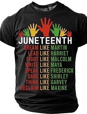 Camiseta masculina Juneteenth "Sonhe como Martin, lidere como Harriet" com estampa gráfica, em homenagem ao Mês da História Negra e ao Dia da Liberdade Afro-Americana. Estilo casual, streetwear,