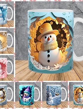 Caneca de presente de Natal 3D boneco de neve 12oz, xícara de café de cerâmica fofa para o feriado, caneca festiva de chá de chocolate quente para o inverno, festa de Natal, escritório, decoração de