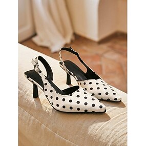 Sapato de salto slingback feminino vintage dos anos 1950 com estampa de bolinhas - elegante preto &Sapatos brancos de bico fino e salto baixo para festas retrô e eventos rockabilly. &estilo meados do
