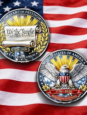 Moeda comemorativa do 250º aniversário dos EUA (1776-2026), item colecionável patriótico do semiquincentenário, com o desenho "Nós, o Povo" e a águia-careca, presente histórico para a celebração da independência.