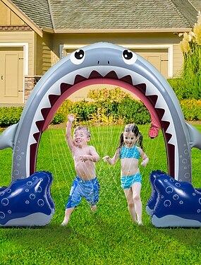 Aspersor de tubarão gigante para crianças, brinquedo aquático inflável para brincadeiras ao ar livre no verão, aspersor de brincadeiras ao ar livre para quintal, presente de jogo de verão para meninos