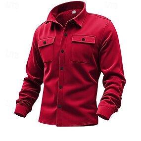 Homens jaqueta leve jaqueta de verão Jaqueta de Camisa Jaqueta Carga Férias Diário Forro de Velocino Manter Quente Bolsos Outono & inverno Tecido Moda Clássico Lapela Padrão Camelo Preto Vermelho