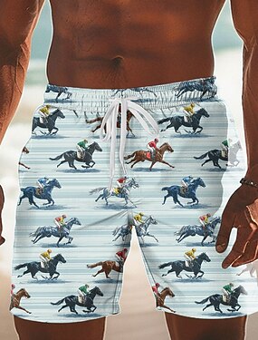 Derby de Kentucky Homens Corrida de cavalo Calção Justo de Natação Shorts de Natação Bermuda de Surf Cintura Média Retro Vintage Feriado Bolsos laterais Forro de malha Cintura elástica com cordão