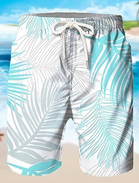 Homens Coqueiro Folha de palmeira Plantas Tropicais Shorts de moletom Shorts de praia Shorts Terry Cintura Média Havaiana férias na praia Com Cordão Cintura elástica Impressão 3D Designer Roupa