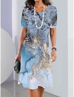 Mulheres Vestido no Joelho Vestido de turno Vestido casual Elegante Moda Moderno Diário Ao ar livre Férias Normal Gráfico Abstrato Manga Curta Gola Redonda Azul Rosa Verde Escuro Marron Verão