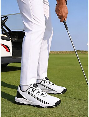 Sapatos de golfe masculinos com sistema de ajuste Boa – couro sintético premium, design elegante na cor branca para golfe e esportes ao ar livre.