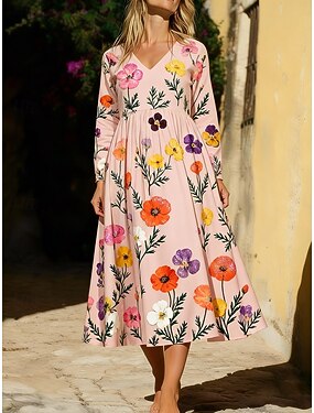 Páscoa Mulheres Vestido midi Vestido A Line Vestido justo e evasê Aniversário Casual Formal Encontro Normal Floral Gráfico Manga Longa Decote V Rosa Roxo Verde Verão Primavera