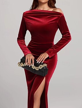 Mulheres Vestido midi Vestido preto Vestido de renda Vestido de formatura Vestido de festa Elegante Moda Moderno Festa de Noite Festa Ocasião Especial Normal Tecido Manga Longa Gola Redonda Azul