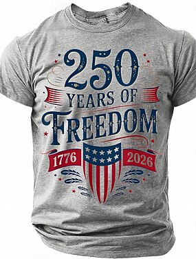 4 de julho de 2026 250º Dia da Memória T-Shirt Masculina 3D Impressão com Decote Redondo de Manga Curta Rua Diária