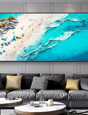Pintura a óleo feita à mão sobre tela, arte de parede moderna e abstrata com paisagem marinha para decoração de casa, pintura esticada em moldura ou pintura enrolada sem moldura.