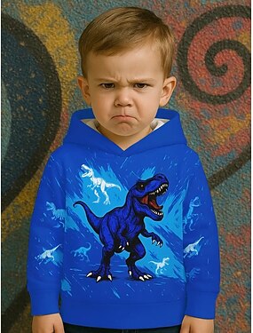 Para Meninos 3D Gráfico Desenho Animado Dinossauro Moletom Pullover Manga Longa Impressão 3D Primavera Outono Esportes Moda Roupa de rua Infantil 4-12 anos Com Capuz Ao ar livre Casual Diário Normal