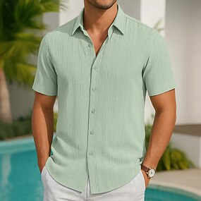 Homens Camisa Social Camisa de linho camisa de verão camisa de botão Camisa casual camisa de praia Côr Sólida Férias Diário Preto Branco Rosa Azul Manga Curta Colarinho Verão Roupa