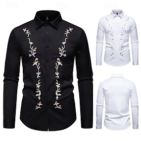 Homens Camisa Social Saia camisa de botão Camisa Bordada Tecido Formal Casamento Preto Branco Manga Longa Lapela Primavera Outono Roupa Bordado