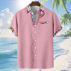 Homens Plantas Estampa floral Flores tropicais Camisa Social Camisas havaianas Camiseta Aloha Manga Curta Havaiana Férias Feriado Verão Aberto para a Lateral Impressão 3D Um bolso frontal Camisa tipo