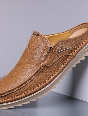 Mocassins masculinos clássicos marrons – sapatos sociais elegantes, sem cadarço, para o escritório e para atividades ao ar livre, cabedal em couro, confortáveis.
