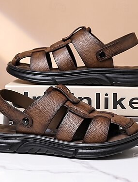 Sandálias casuais masculinas de couro sintético para o verão – tiras respiráveis, calcanhar e palmilha ajustáveis, leves e confortáveis, perfeitas para férias na praia, resorts, piscina e momentos de lazer ao ar livre.