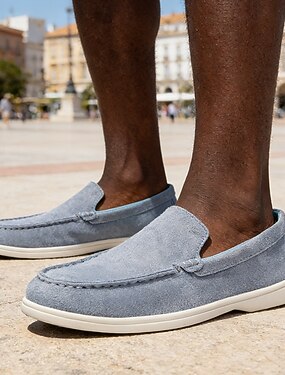 Mocassins masculinos de camurça, estilo slip-on – calçado casual de verão confortável, com palmilha macia e cabedal respirável, perfeito para férias na praia, lazer diário e viagens.