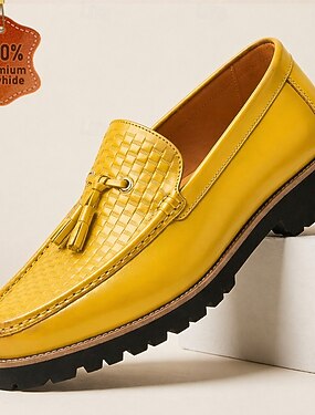 Homens Vintage Casual Diário Casamento Pele PU Confortável Respirável Sem Atacadores Amarelo Verão Primavera Outono