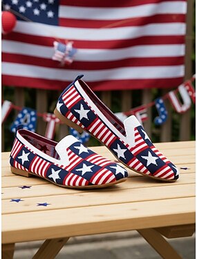 Mocassins femininos comemorativos do 250º aniversário dos EUA - sapatilhas patrióticas com estrelas e listras, perfeitas para as celebrações do Dia da Independência de 2026, piqueniques ao ar livre e desfiles festivos.
