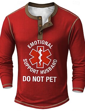 Camiseta Henley Masculina de Manga Longa Engraçada - Marido de Apoio Emocional Não Acaricie Camiseta Gráfica