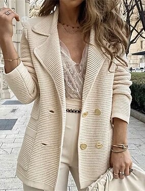 Mulheres Blazer Manter Quente Confortável Bolsos Botões Moda Ao ar livre Tecido Para Noite Final de semana Não Trespassado Padrão Lapela Normal Manga Longa agasalhos Preto Branco Rosa Outono Inverno
