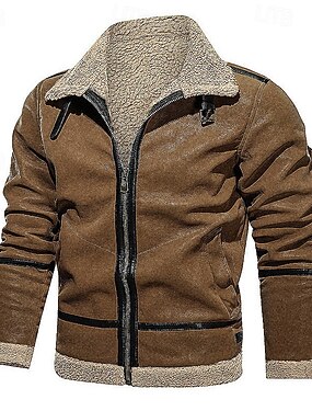 Homens Jaqueta de Inverno Jaqueta sherpa Férias Diário Térmico / Quente Bolsos Tosão Inverno Tecido Moda Roupa de rua Lapela Padrão Preto Amarelo Vinho Café Casaco