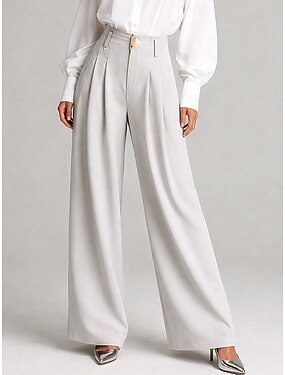 Mulheres Perna larga Calças Calça Palazzo Moda Roupa de rua Comprimento total Cintura Alta Tecido Bolsos Respirabilidade Confortável Rua Roupa Diária Para Noite Branco Marron Verde Cinzento Verão