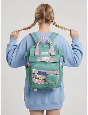 Mochila feminina impermeável em poliéster, com alças ajustáveis, disponível em várias cores, grande capacidade para escola, viagens, esportes ao ar livre e uso casual diário, perfeita para a volta às