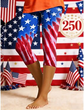 Calças capri femininas para o Dia da Independência dos EUA, leggings, moda férias, calças capri casuais de cintura alta, confortáveis e elásticas, para uso diário, férias e passeios na cidade, nas