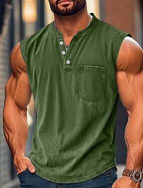 Homens Malha Íntima Top de colete Camiseta Interior Camisa 100% algodão com lavagem ácida Sem Manga Henley Verão Tecido Moda Designer Básico Bolsos Botões Casual Férias Rua Azul Preto Verde Claro Top