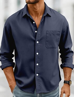 Homens Masculino Camisa Social camisa de linho Camisa de linho de algodão camisa de botão camisa de praia Azul Azul Escuro Manga Longa Tecido Lapela Casual Diário Bolso frontal Roupa Moda Confortável