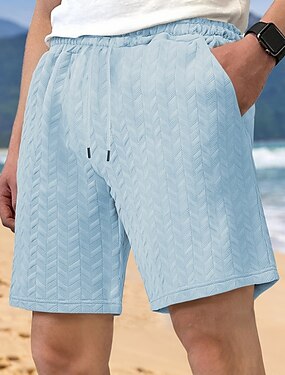 Homens Calção Shorts casuais Jacquard Bolsos Cintura elástica Tecido Textura Conforto Respirável Curto Casual Ao ar livre Praia Férias Moda Azul Preto Micro-Elástica