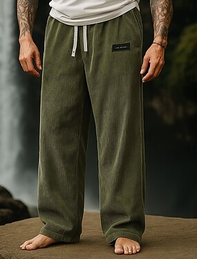 Homens Calças de Veludo Calças Calça casual Com Cordão Cintura elástica Bolso frontal Tecido Conforto Comprimento total Ao ar livre Férias Casa Férias Moda Ajuste Largo Verde Com Stretch