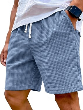 Homens Calções Waffle Calção Shorts casuais Shorts texturizados Bolsos Cintura elástica Tecido Conforto Respirável Comprimento do joelho Casual Ao ar livre Praia Férias Moda Preto Branco