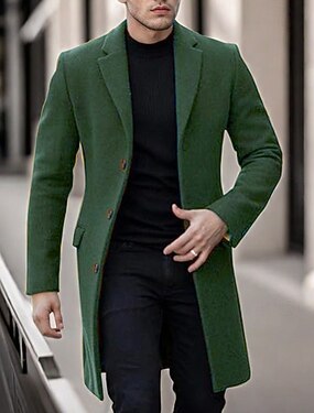 Homens Casaco Casaco impermeável Casaco longo Férias Diário Outono Inverno Poliéster Manter Quente Macio agasalhos Roupa Moda Clássico Tecido Bolsos Lapela Não Trespassado