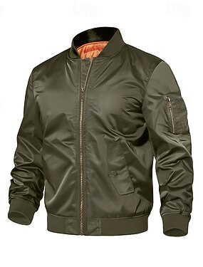 Homens Jaqueta Bomber Jaqueta casual Férias Diário Respirável Bolsos Primavera Outono Tecido Moda Clássico Colarinho Chinês Padrão Preto Verde Tropa Casaco