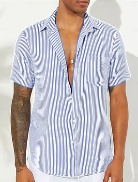 Homens Camisa Social Camisa casual camisa de botão Rosa Vermelho Azul Royal Verde Cinzento Manga Curta Listrado Colarinho de Camisa Casual Diário Bolso frontal Roupa Elegante Moda Casual