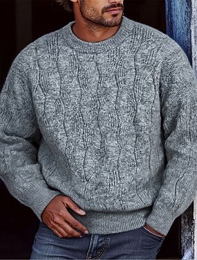 Homens Pulôver suéter Suéter de malha Suéter Polo Pullover Estriado Tricotar Padrão Tricotado Tecido Henley Moda Básico Férias Roupa Diária Roupa Outono & inverno Preto Cinzento Claro M L XL