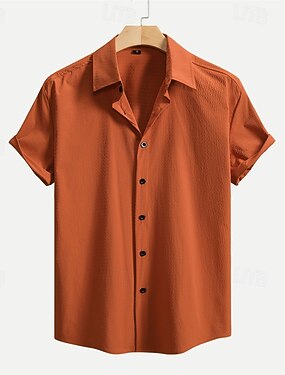 Homens Camisa Social Textura Camisa casual camisa de botão Camisa Jacquard Azul Marron Verde Manga Curta Tecido colar cubano Casual Diário Roupa Elegante Moda Casual
