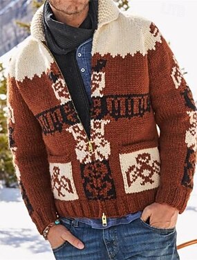 Homens Sueter Cardigan Suéter Cortado Suéter com zíper Suéter de malha Estriado Tricotar Padrão Patchwork Bolsos Bloco de cor Colarinho Chinês Moda Clássico Roupa Diária Encontro Roupa Outono
