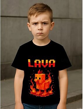 Algodão Infantil Para Meninos Preto Gráfico Desenho Animado Camiseta com estampa divertida Camisa Blusa Gola Redonda Manga Curta Ao ar livre Dia a Dia Moda Roupa de rua Designer Estampado Verão
