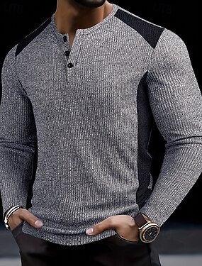 Homens Camiseta Camisa Henley Camisa de manga longa Manga Longa Henley Outono Inverno Bloco de cor Moda Roupa de rua Lazer Botões Férias Desportos e Ar livre Casual Cinzento Top Tee para Homens